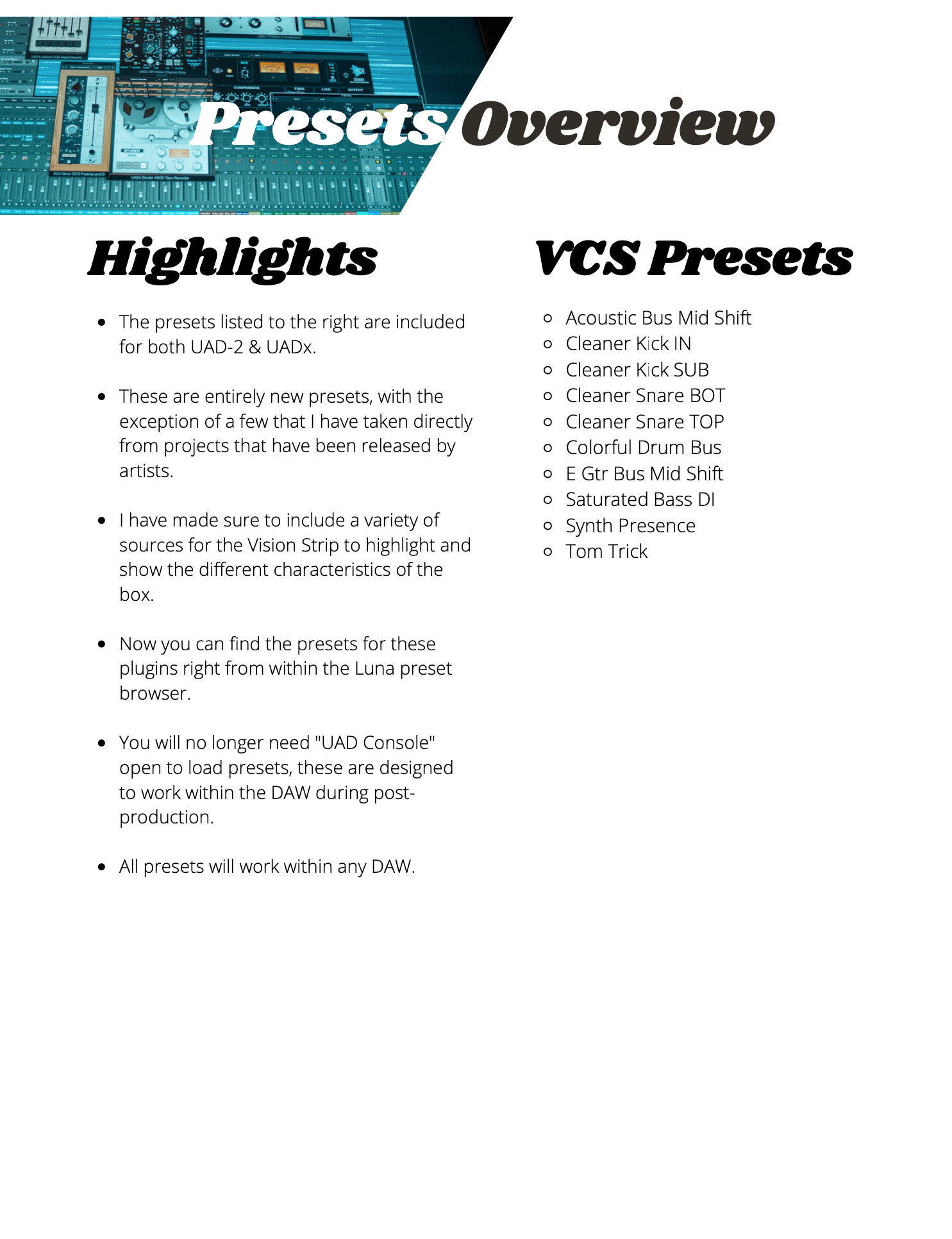 This pack was designed using plugins from UA's Spark & UAD-2.